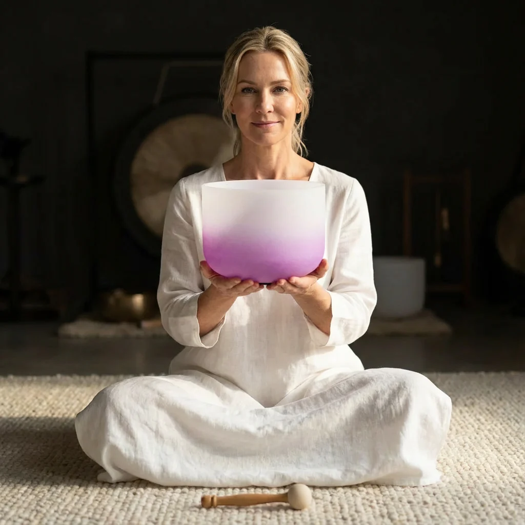 The elegant purple aria gradient design connects visually to the Crown Chakra's traditional violet energy, creating a cohesive sensory experience. Beyond its sonic properties, this bowl becomes a focal point in your sacred space—a beautiful reminder of your commitment to inner peace.